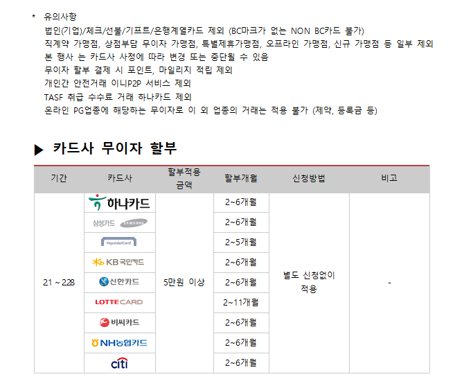 2018년 2월 카드사별 무이자 할부안내