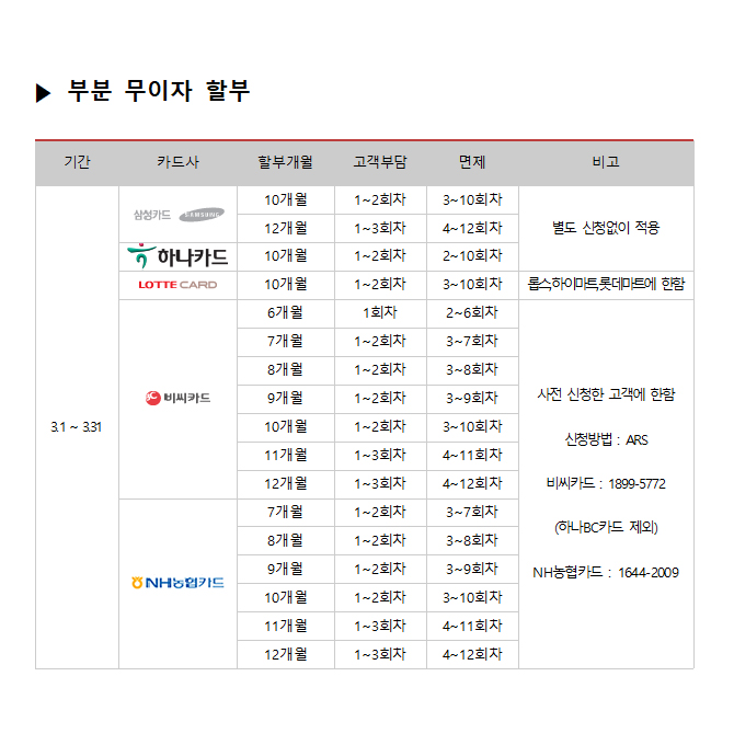 2018년 3월 카드사별 무이자 할부안내