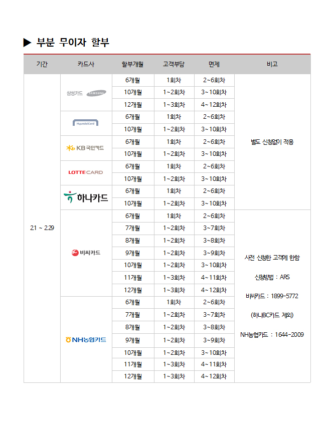| 2016년 2월 카드사별 무이자 할부안내 |