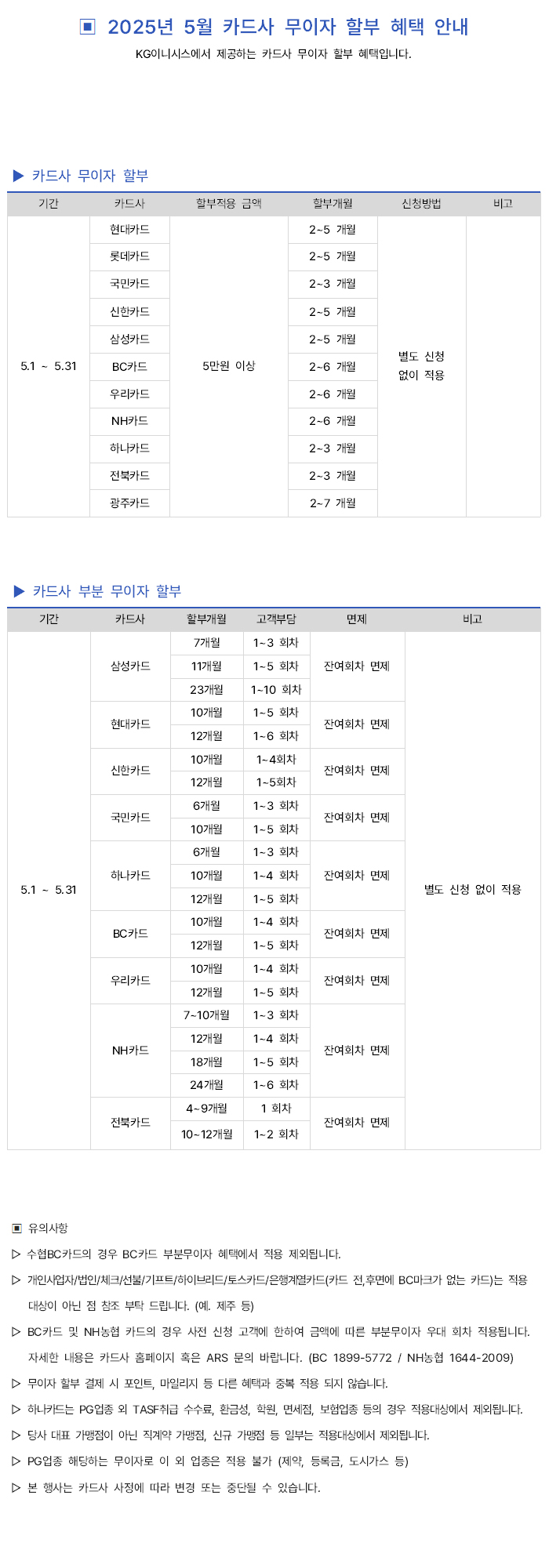 2025년 5월 카드사별 무이자 할부안내