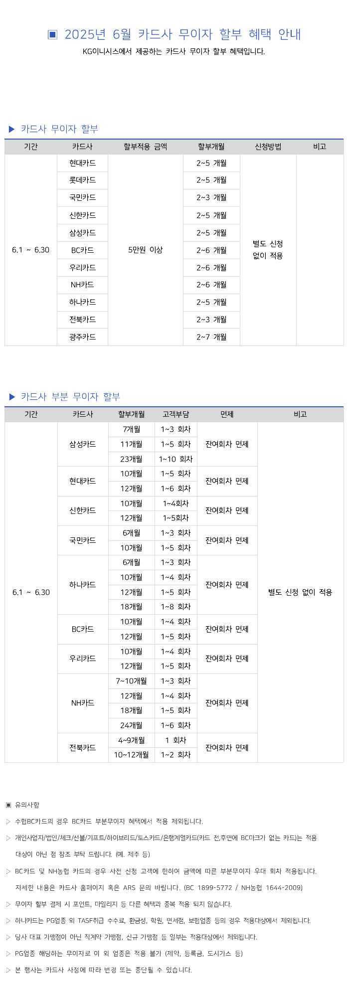 2025년 6월 카드사별 무이자 할부안내