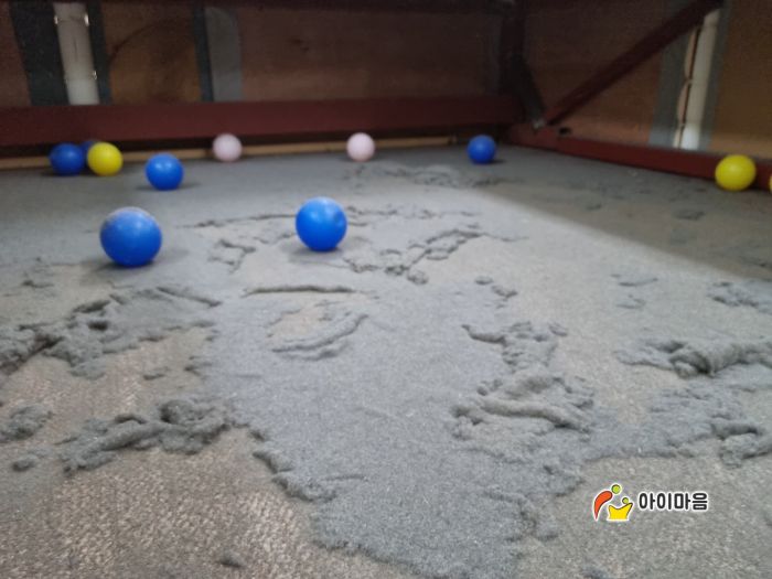 실내놀이터 방방이 아래 카펫처럼 쌓인 먼지 서비스 전.후
