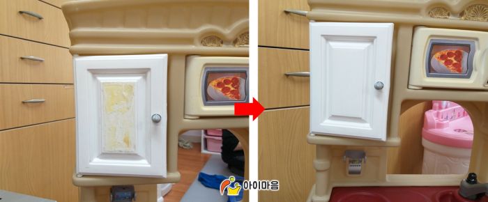스티커가 덕지덕지 붙어있는 장난감 서비스 전 후
