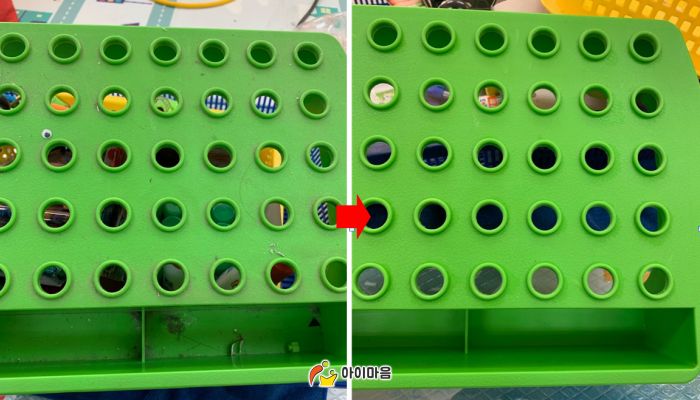 스티커가 덕지덕지 붙어있는 장난감 서비스 전 후
