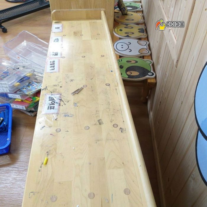 교구장에 붙어있는 스티커를 제거하고 낙서나 손때 등을 깨끗하게 닦아냅니다.