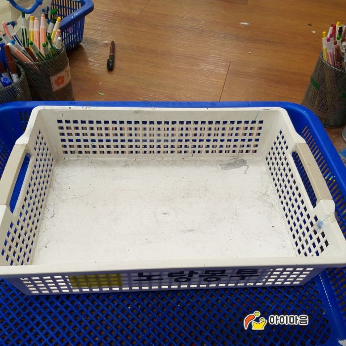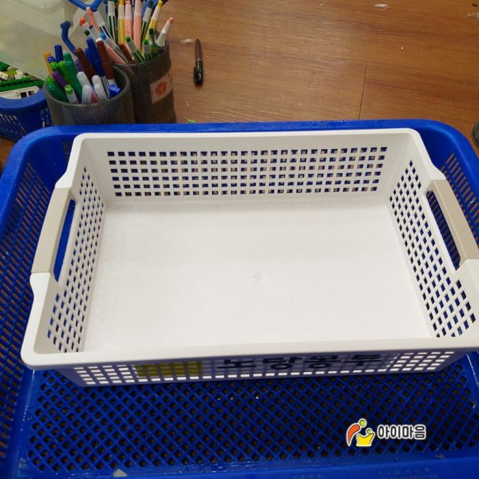 장난감이나 교구재들을 담아놓는 바구니의 미세먼지와 스티커자국을 완벽하게 제거합니다.