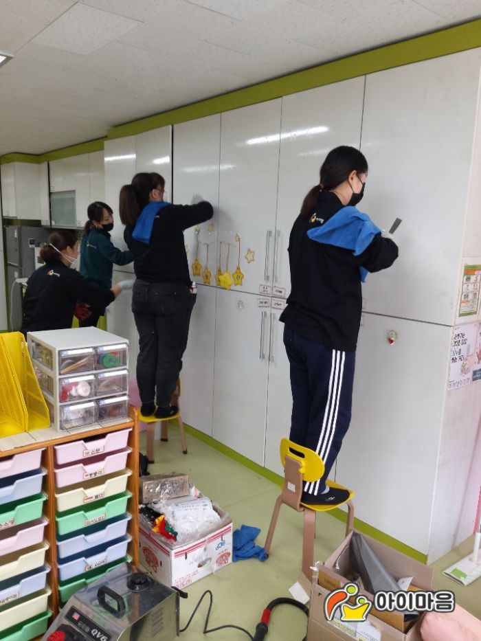 유치원교구벽면 스티커 제거 서비스 전후
