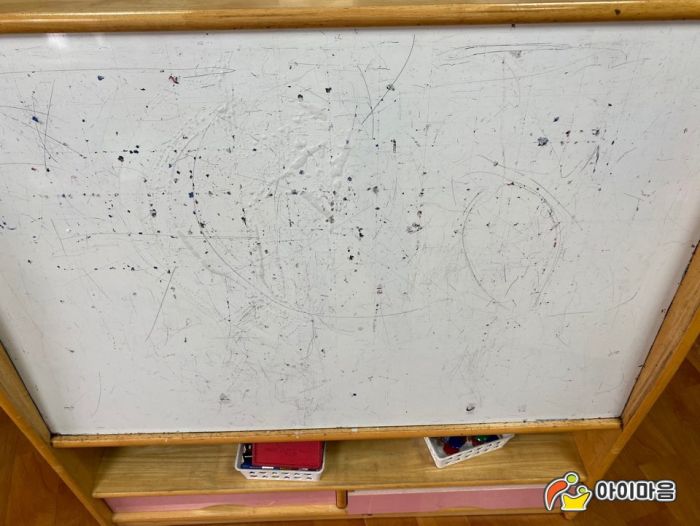 스티커가 잔뜩 붙어있는 교구장 서비스 전 후