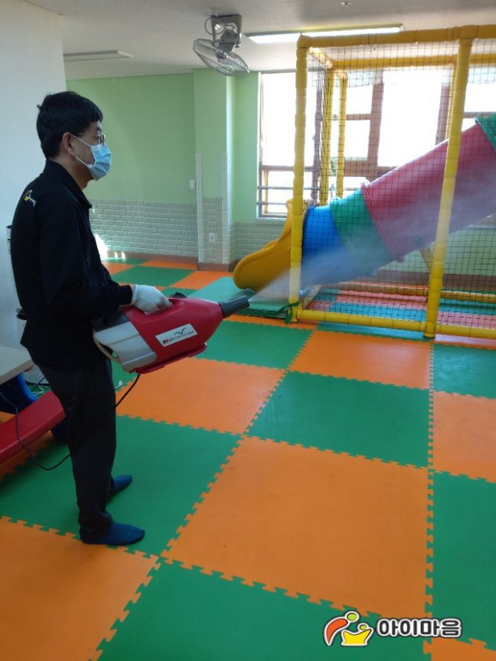 미끄럼틀과볼풀장이 있는 놀이방의 서비스 전후