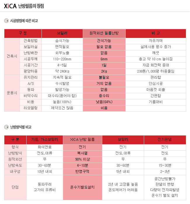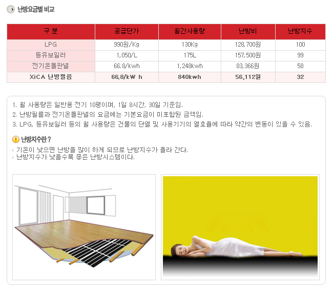 온돌난방필름과 일반난방의 비교