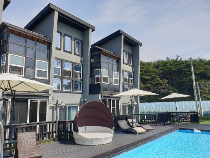 태안 안면도 꿈꾸는 **방 애견펜션 2020년09월15일 히트펌프와 풀커버 설치