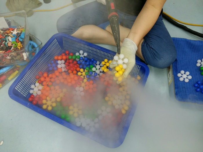 놀잇감을 고온스팀으로 세척살균소독하는 작업입니다.