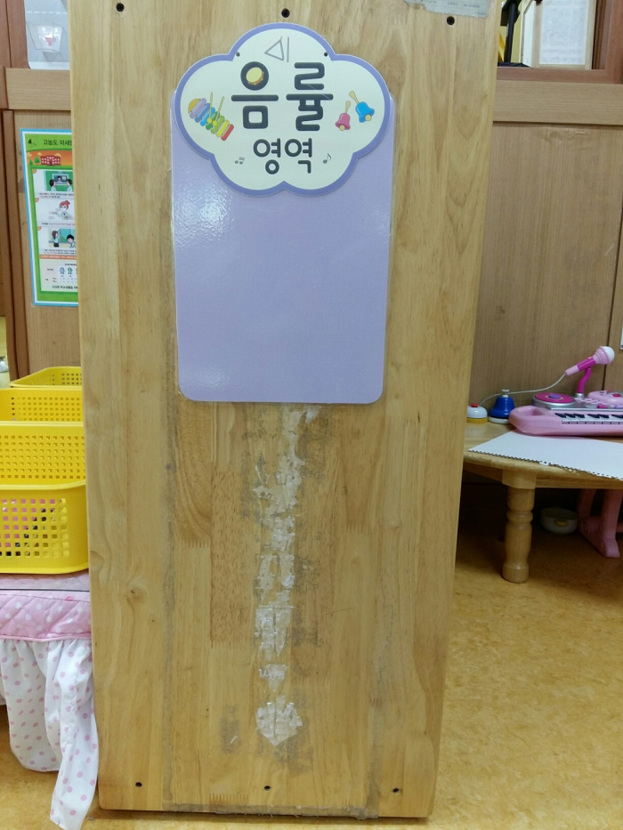 교구장에 남아있는 스티커자국 제거 전.후 사진입니다.