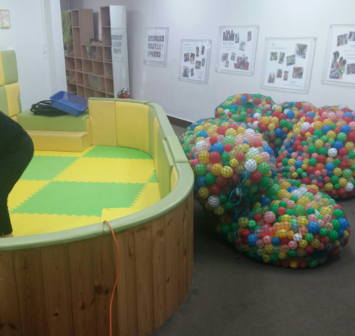 볼풀장의 공을 수거후 볼풀장안 오염울질을 깨끗이 청소후 소독한 공을 넣어주는 작업