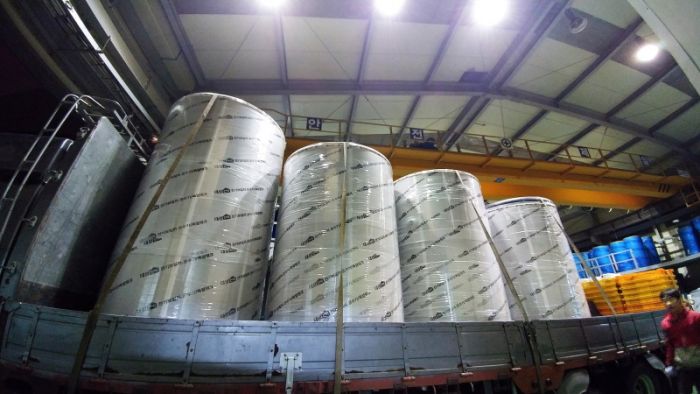 출고 상차중 5000리터 스텐온수기 와 스텐축열탱크