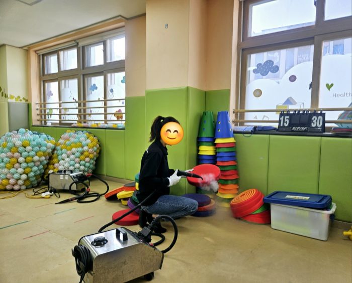 지난 2월 교실소독에 이어 구산유치원 실내놀이터, 아뜰리에