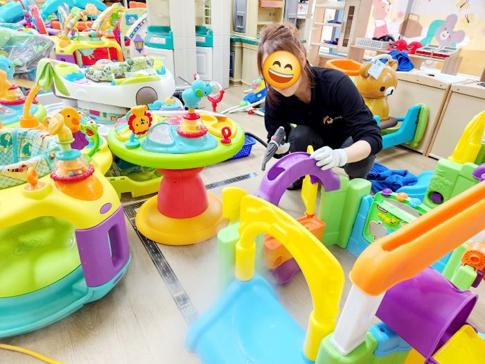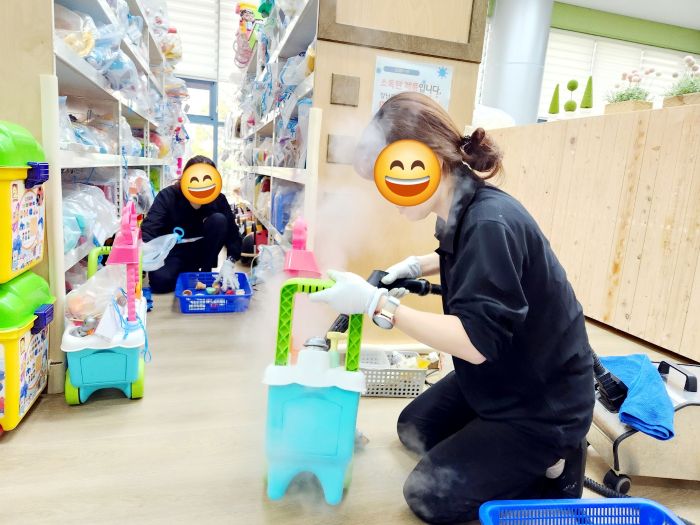장난감을 스팀세척살균소독 하였습니다.