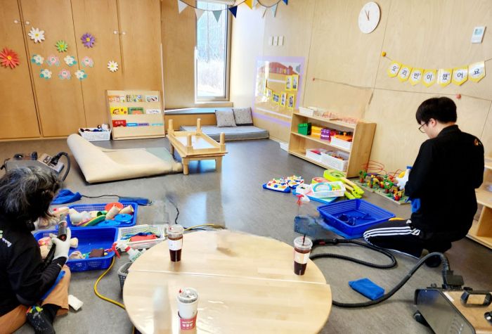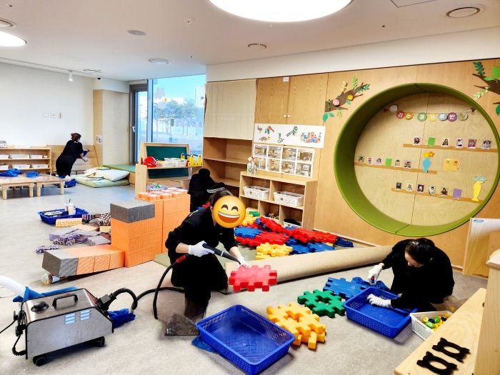 책걸상과 교구장, 교구재를 스팀세척살균소독 하였습니다.