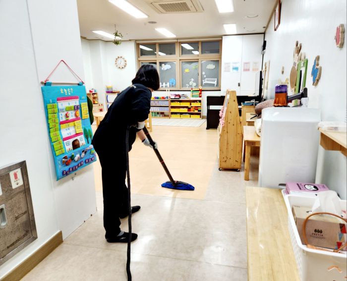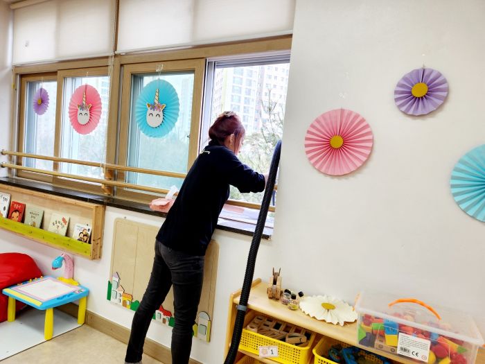 책걸상과 교구장, 교구재를 스팀세척살균소독 하였습니다.