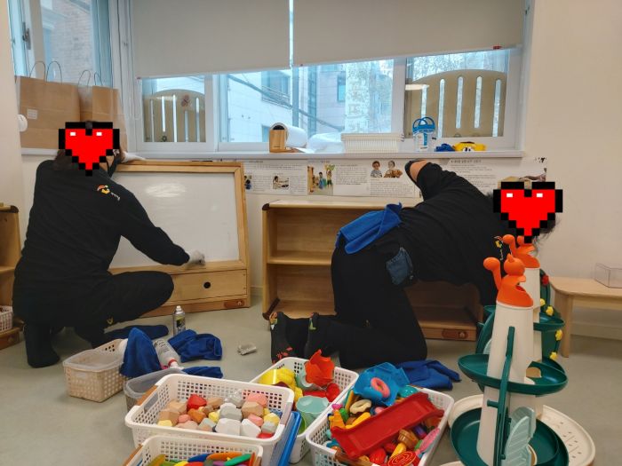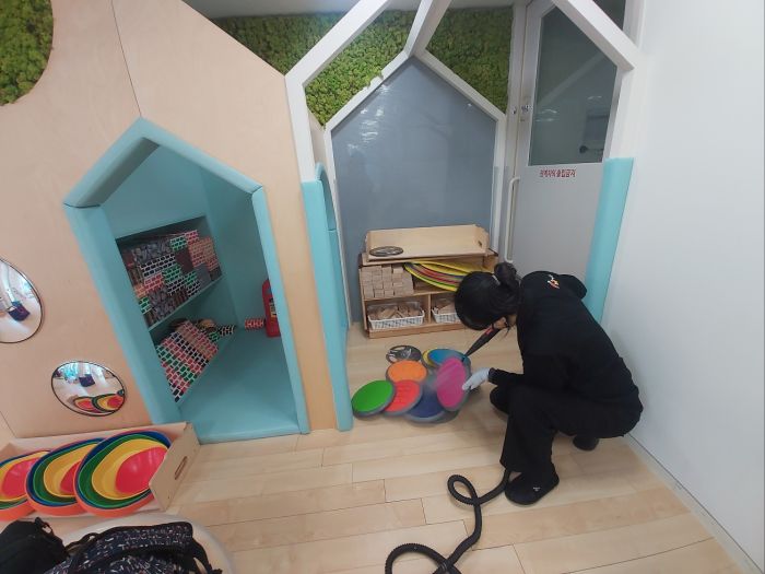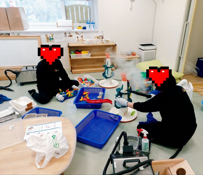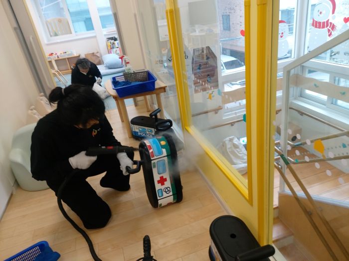 책걸상과 교구장, 교구재를 스팀세척살균소독 하였습니다.