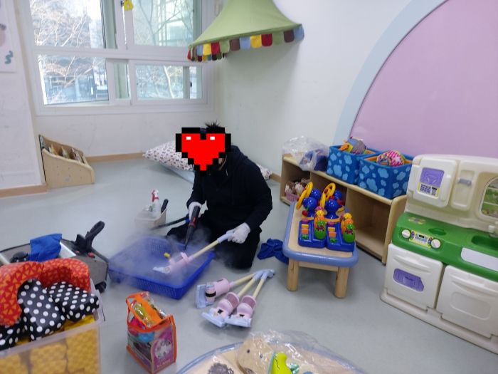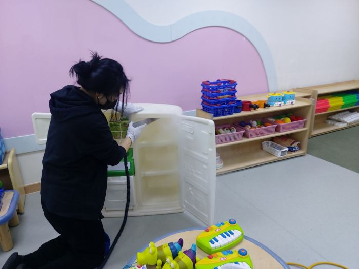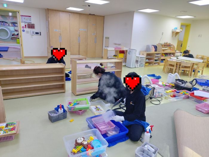 책걸상과 교구장, 교구재를 스팀세척살균소독 하였습니다.