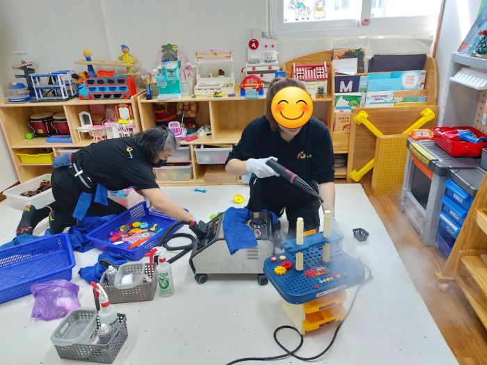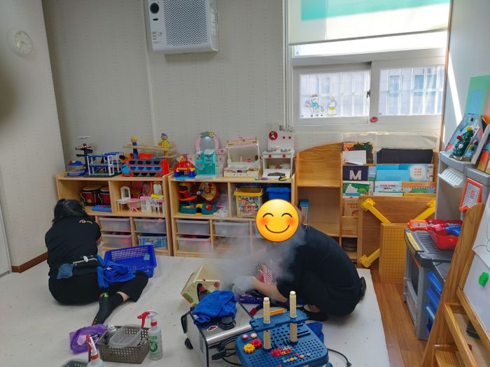 교구와 장난감을 스팀세척살균소독 하였습니다.