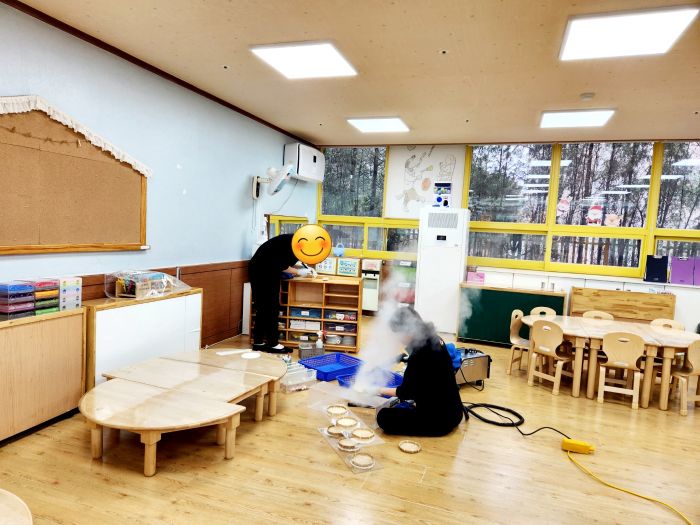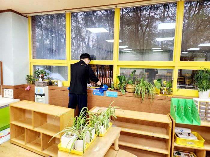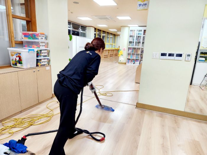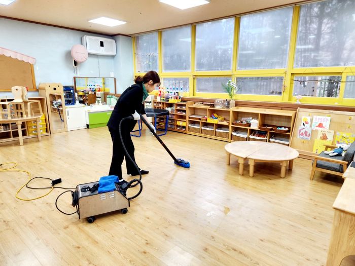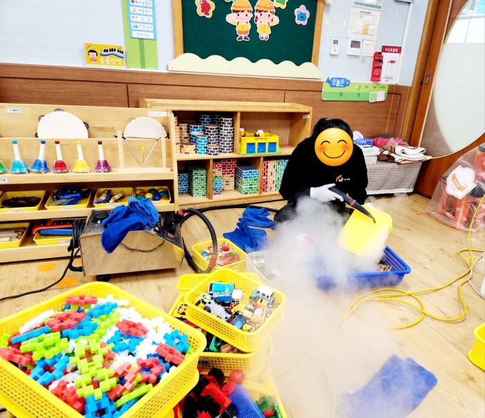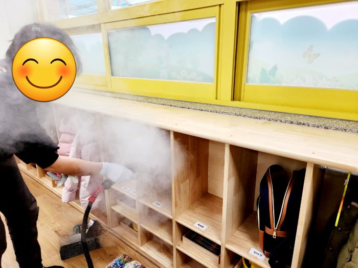 책걸상과 교구장, 교구재를 스팀세척살균소독 하였습니다.