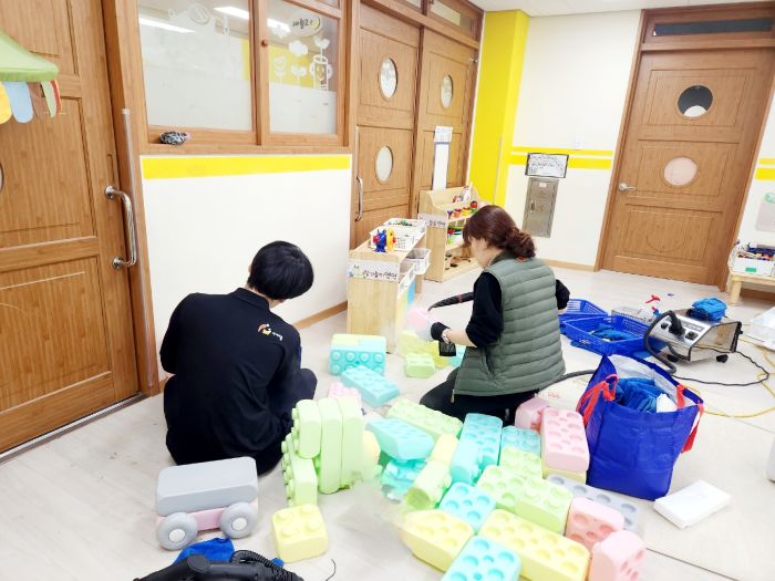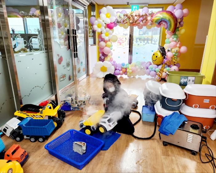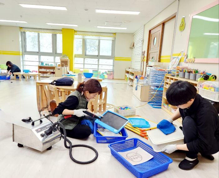 책걸상과 교구장, 교구재를 스팀세척살균소독 하였습니다.