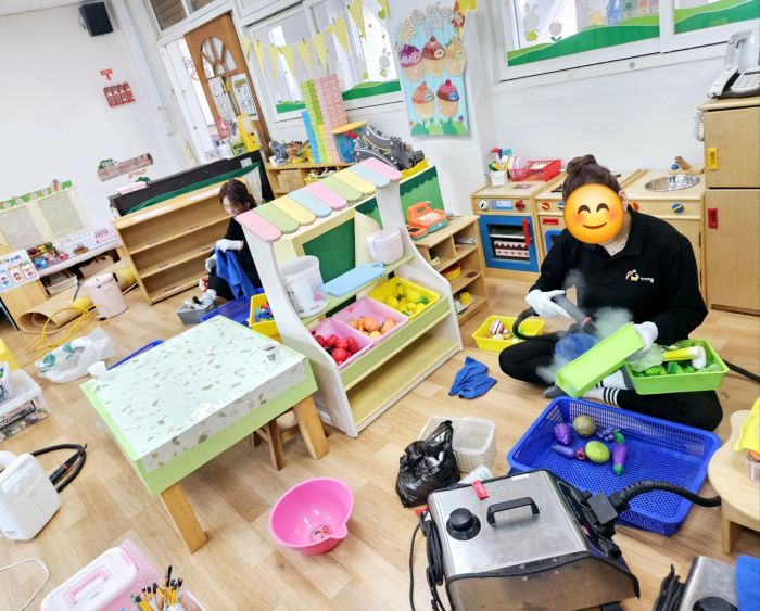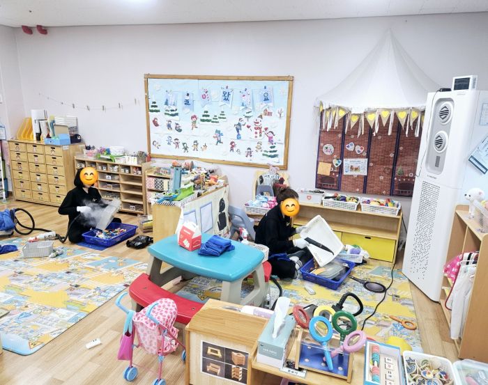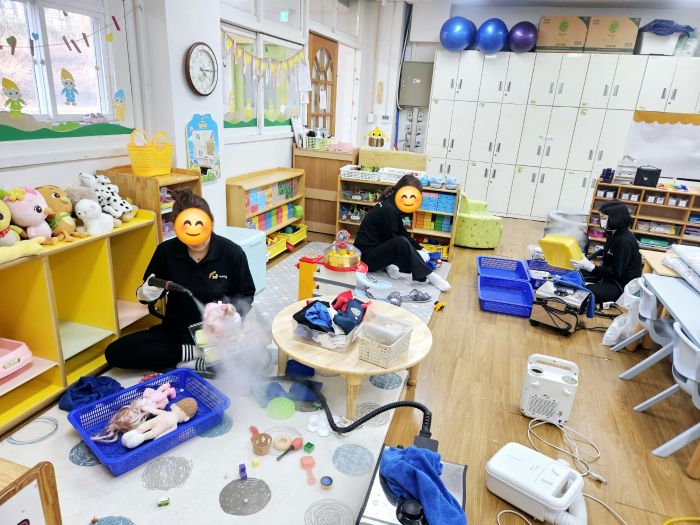 안중초병설유치원 책걸상과 교구장, 교구재, 복도 등 기타시설물 소독을