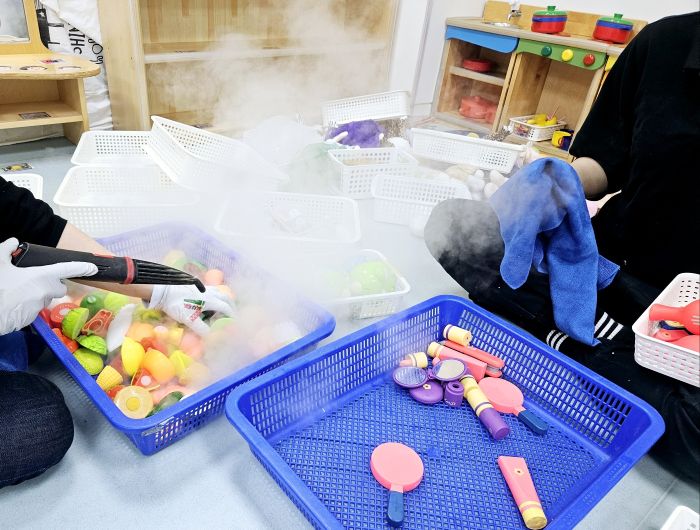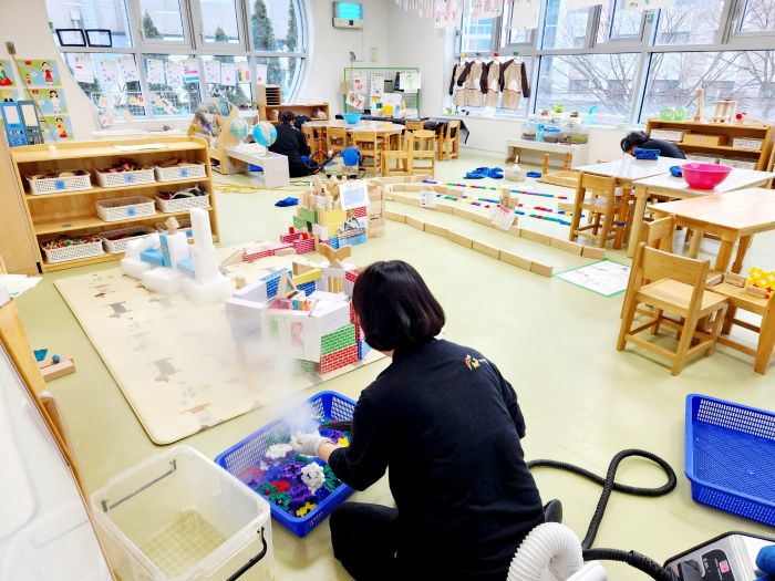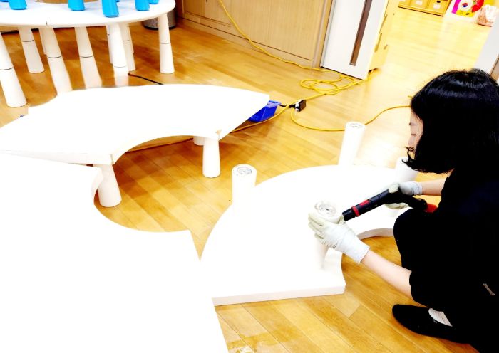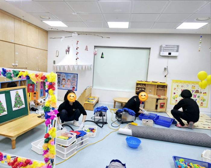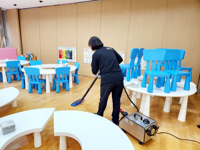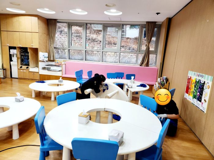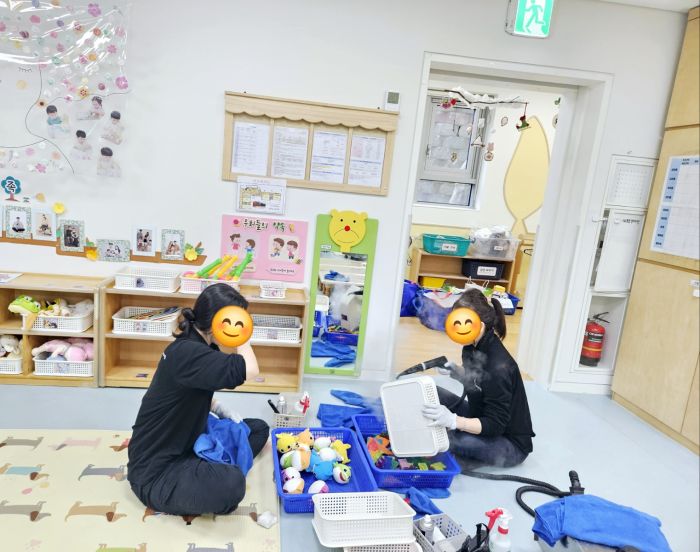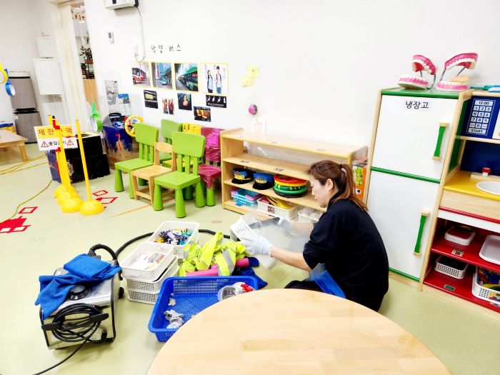 책걸상과 교구장, 교구재를 스팀세척살균소독 하였습니다.