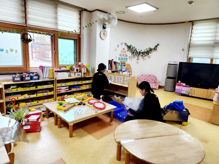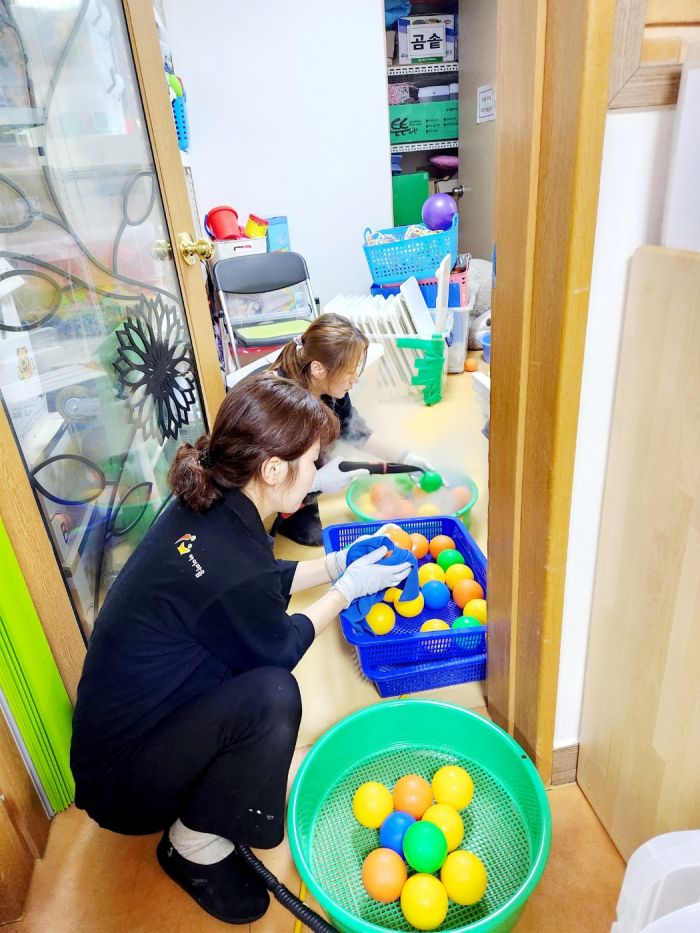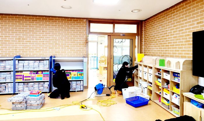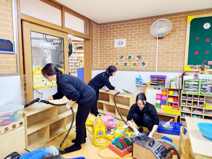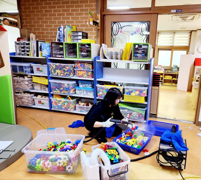 책걸상과 교구장, 교구재를 스팀세척살균소독 하였습니다.