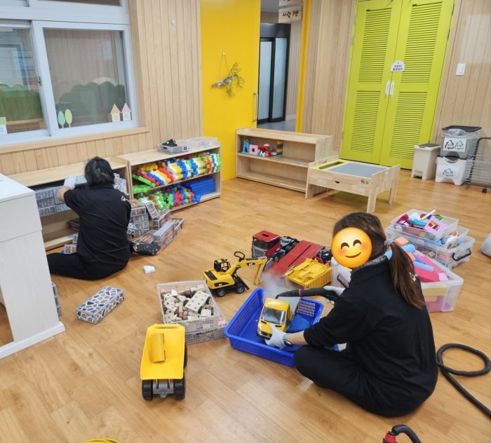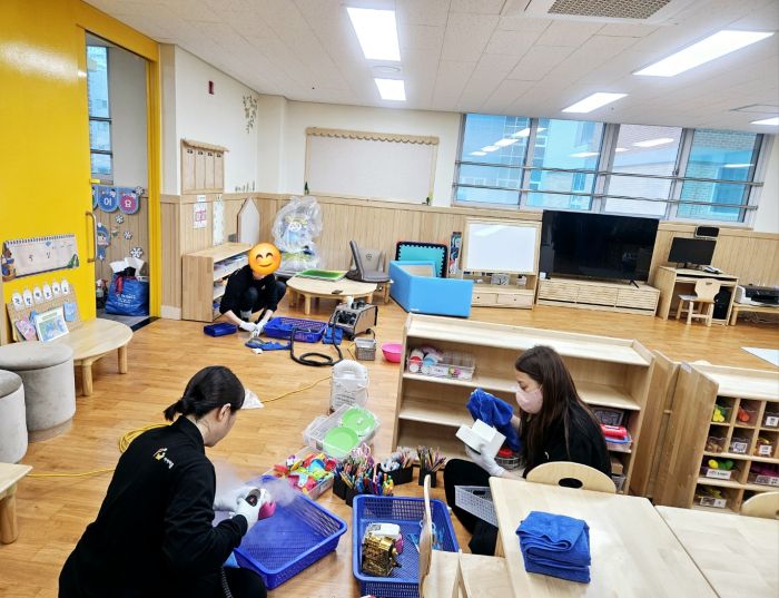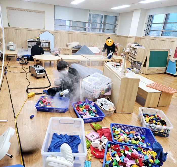 책걸상과 교구장, 교구재를 스팀세척살균소독 하였습니다.