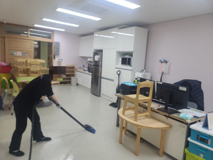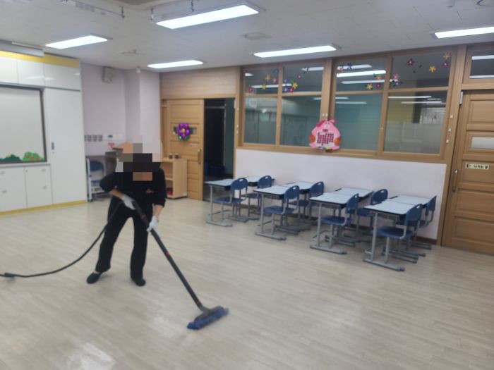 서재초돌봄실 바닥을 스팀세척살균소독 하였습니다.