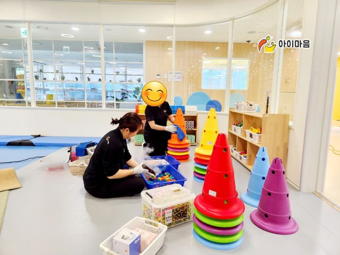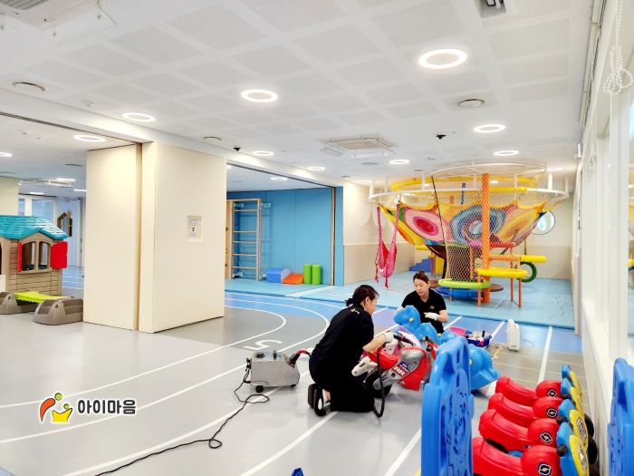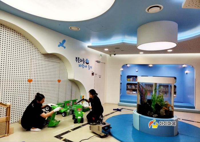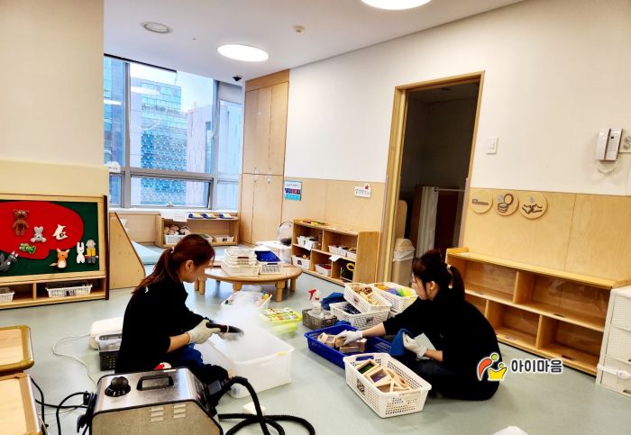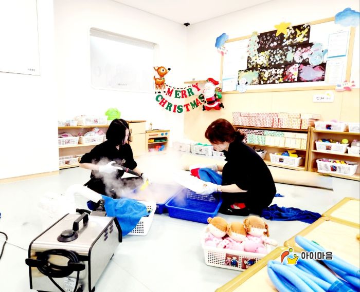 14개교실의 책걸상 교구장, 교구재를 스팀세척살균소독 하고
