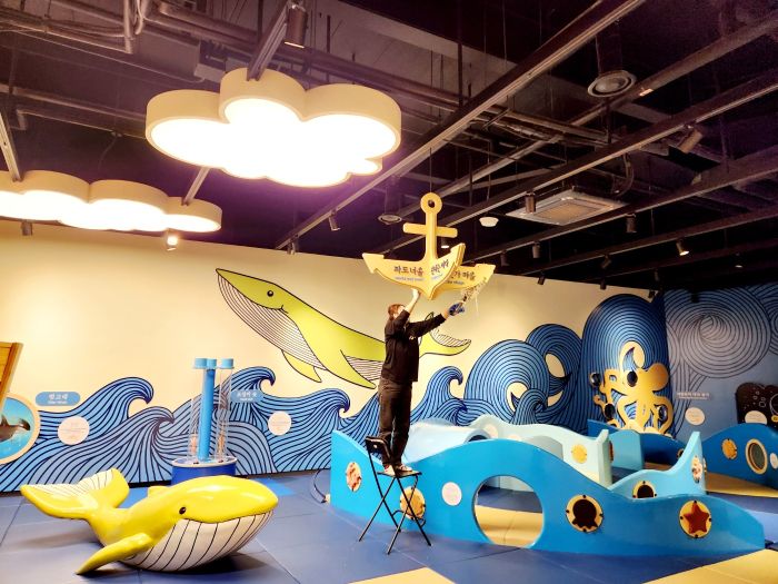 숲속오감놀이존 카펫, 바다놀이 영유아존 시설물과 바다매트등을