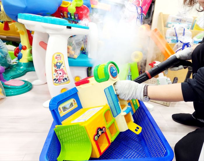 장난감을 스팀세척살균소독 하였습니다.