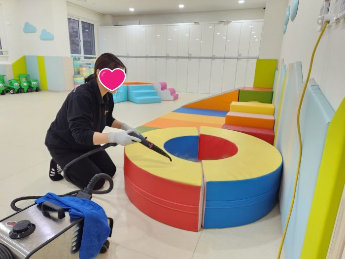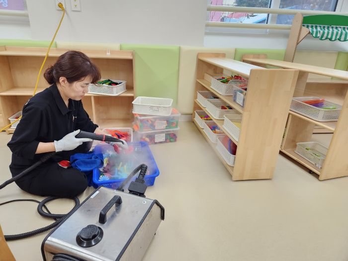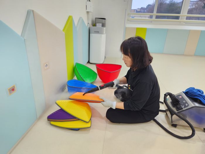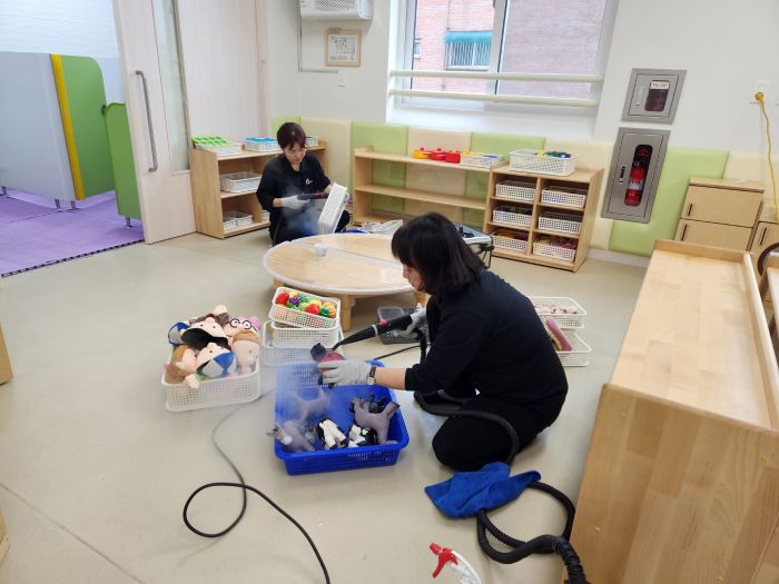 책걸상 교구장, 교구재를 스팀세척살균소독 하였습니다.