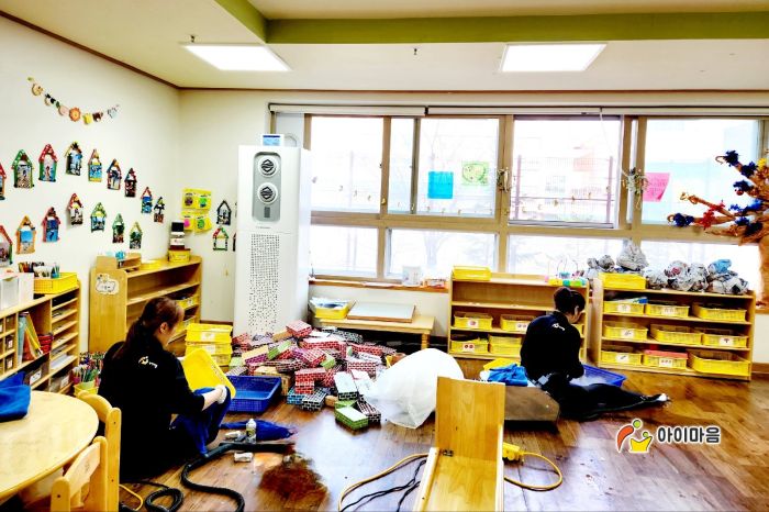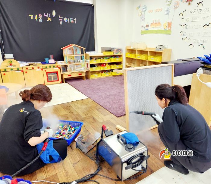 책걸상과 교구장, 교구재를 스팀세척살균소독 하였습니다.