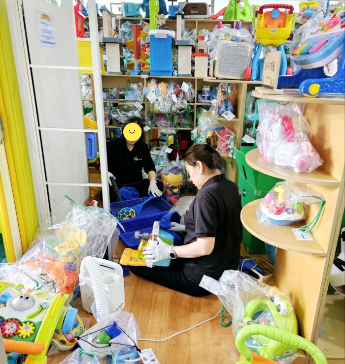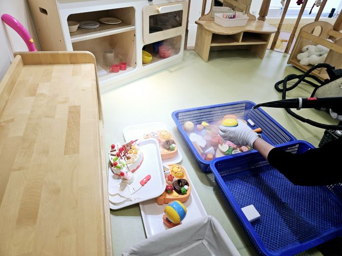장난감을 스팀세척살균소독 하였습니다.