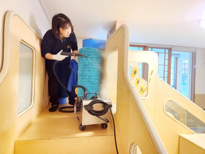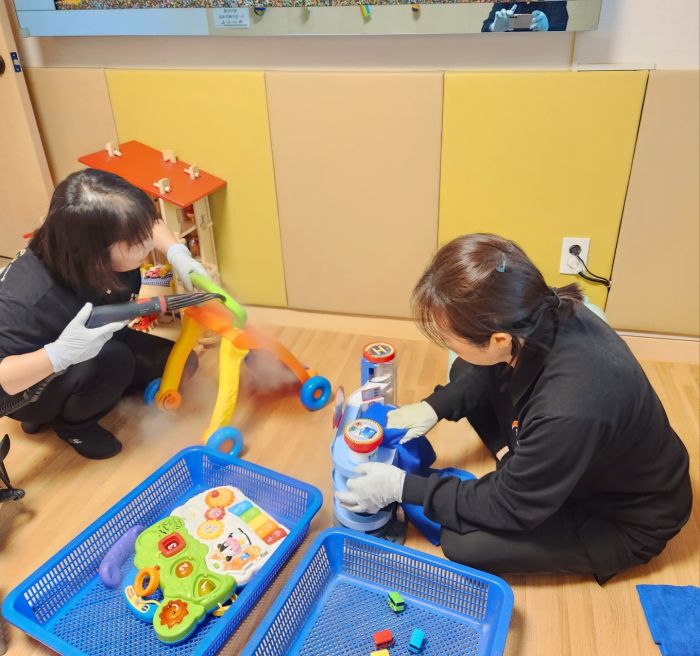 장난감과 지정시설물을 스팀세척살균소독 하였습니다.