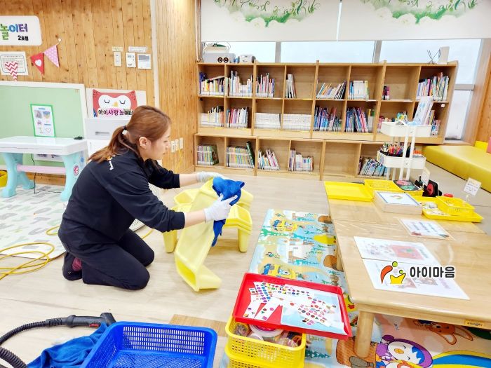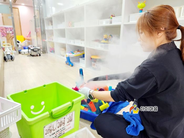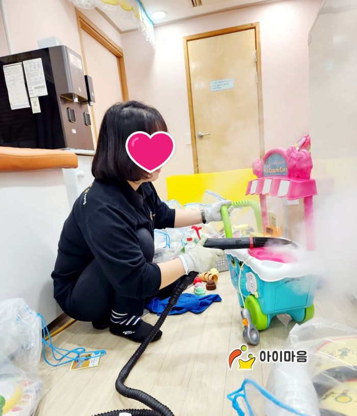 장난감과 시설물을 스팀세척살균소독 하였습니다.