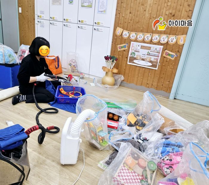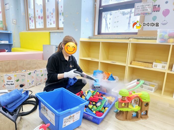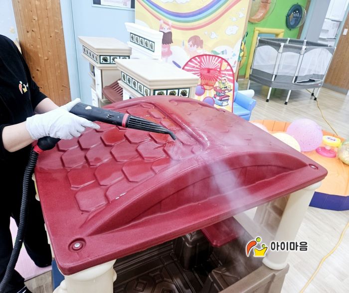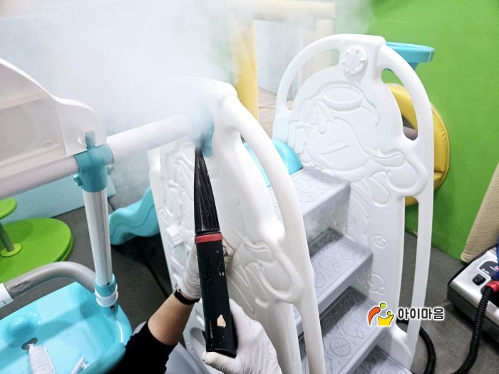장난감과 시설물을 스팀세척살균소독 하였습니다.