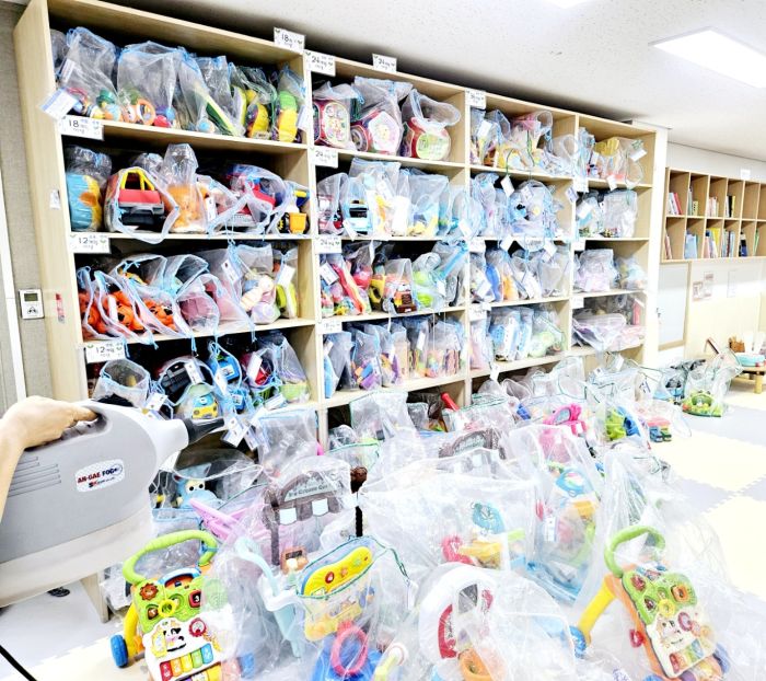 당산2호점 장난감을 스팀세척살균소독 하였습니다.