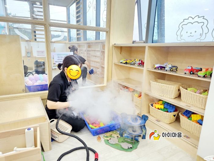장난감과 시설물을 스팀세척살균소독 하였습니다.