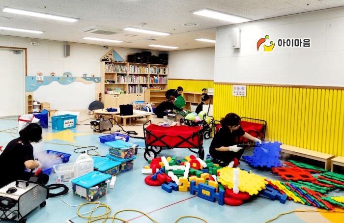 책걸상 교구장, 교구재를 스팀세척살균소독 하였습니다.
