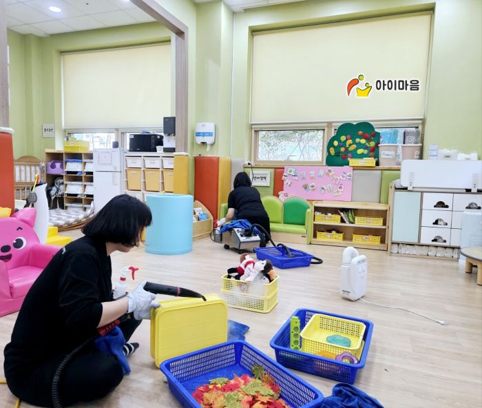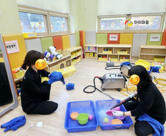 장난감과 시설물을 스팀세척살균소독 하였습니다.