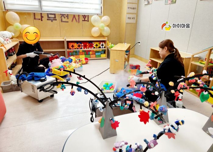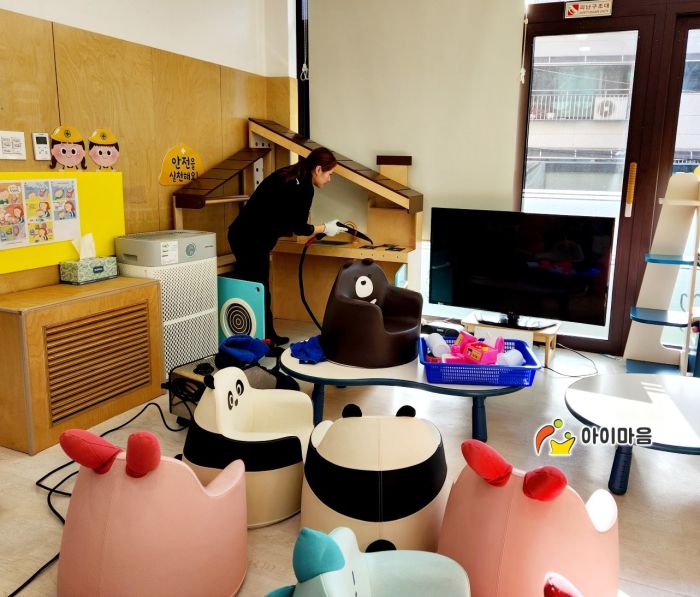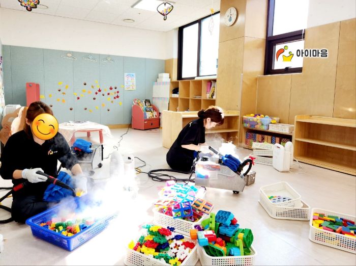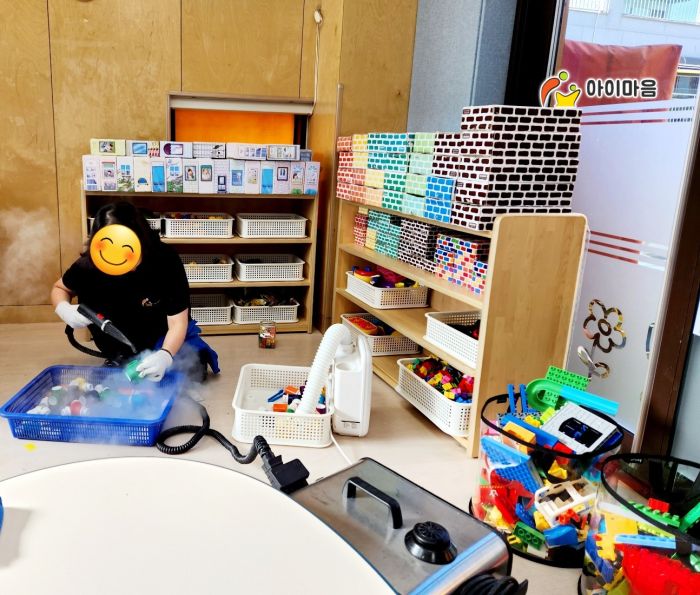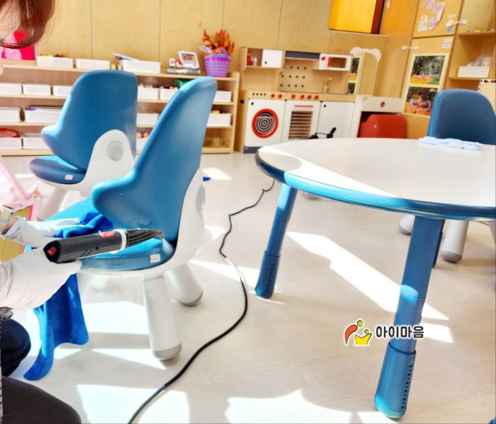 책걸상과 교구장, 교구재를 스팀세척살균소독 하였습니다.