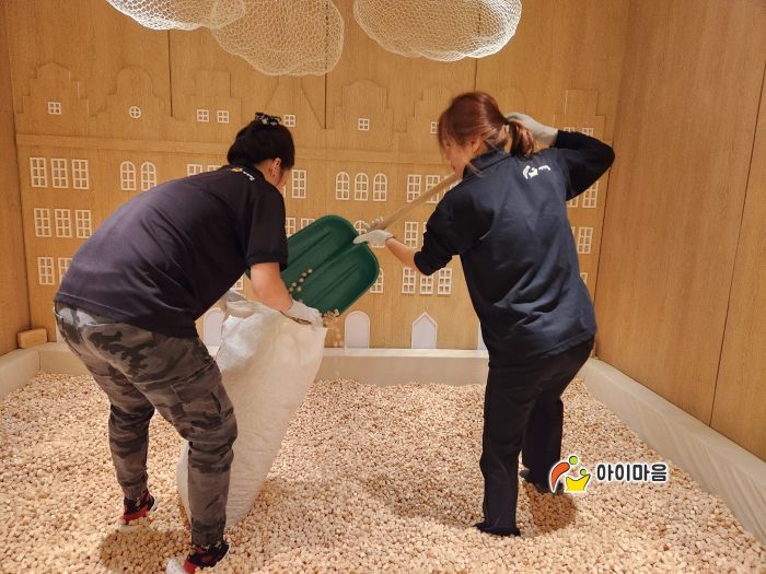 신라호텔 키즈룸 편백나무칩놀이터와 편백나무칩을