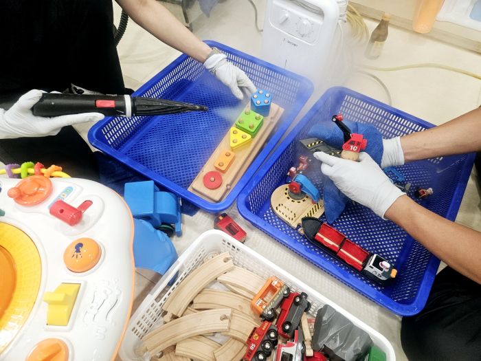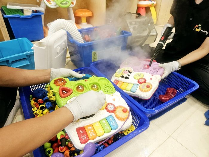 아이맘 강동 성내점 장난감을 스팀세척살균소독 하였습니다.