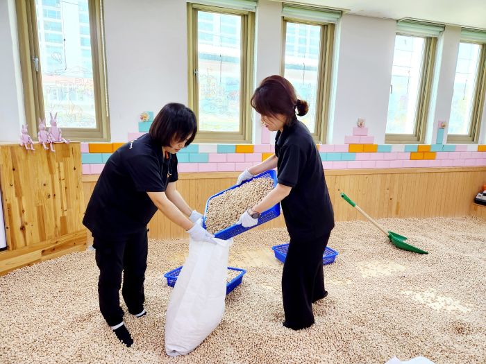 편백나무칩과 장을 세척소독 작업하였습니다.